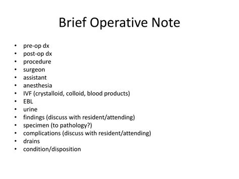 Brief Op Note - Acute cholecystitis with contracted gallbladder. Outline of a brief operative note. An operation note is essential to ensure continuity of care between the operating team and other colleagues, and provides a. It’s usually the only information a payor wants when there is a dispute about your reimbursement. Leep loop transcribed medical transcription electrosurgical excision procedure sample report for reference by.